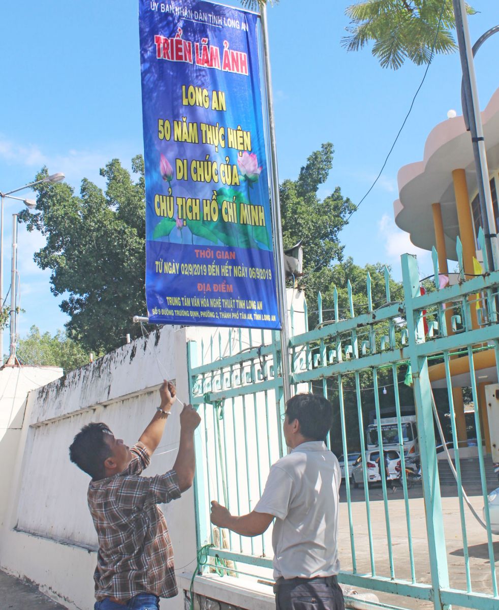 Triển lãm ảnh “Long An - 50 năm thực hiện Di chúc của Chủ tịch Hồ Chí Minh” với 200 bức ảnh. đó là các bức ảnh giới thiệu về cuộc đời hoạt động của Chủ tịch Hồ Chí Minh; Bác Hồ với nền văn hóa Việt Nam; Học tập và làm theo tấm gương, đạo đức Hồ Chí Minh; gương điển hình trong thực hiện Di chúc của Bác; thành tựu kinh tế - văn hóa - xã hội, an ninh - quốc phòng của tỉnh;...
