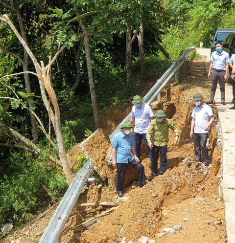 | Đoàn công tác kiểm tra tình hình sạt lở đường giao thông do ảnh hưởng của mưa lớn (Ảnh: N.H) |