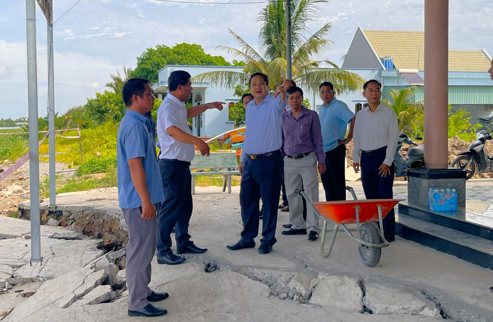 Phó Chủ tịch UBND tỉnh - Nguyễn Minh Lâm cùng các sở, ban, ngành tỉnh và UBND huyện Thủ Thừa khảo sát điểm sạt lở tại ấp 1, xã Mỹ Thạnh, huyện Thủ Thừa
