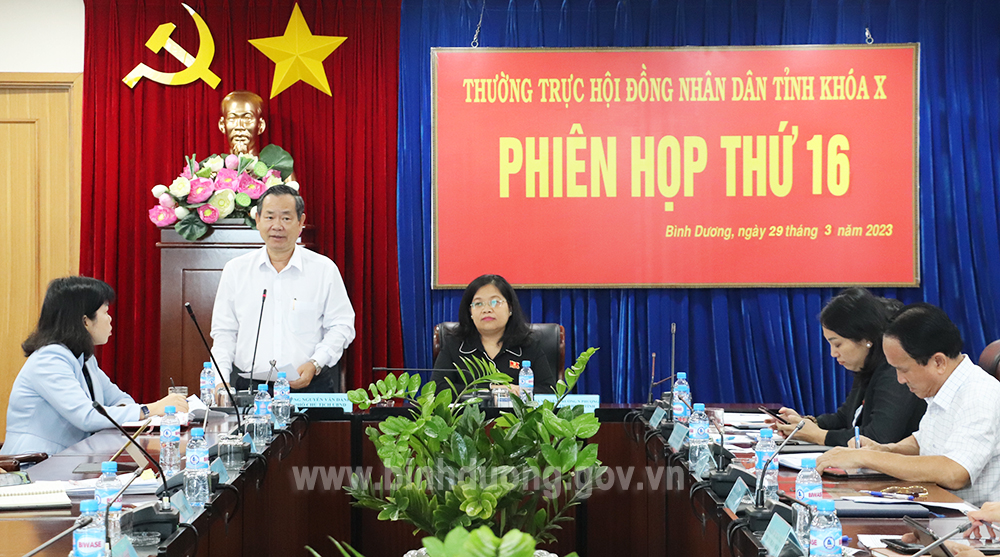 Chiều 29/3, tại Trung tâm Hành chính tỉnh Bình Dương, Thường trực HĐND tỉnh tổ chức Phiên họp lần thứ 16 thông qua các Tờ trình dự thảo của UBND tỉnh. Bà Nguyễn Trường Nhật Phượng – Phó Chủ tịch HĐND tỉnh chủ trì Phiên họp. Tham dự có ông Nguyễn Văn Dành – Phó Chủ tịch UBND tỉnh.