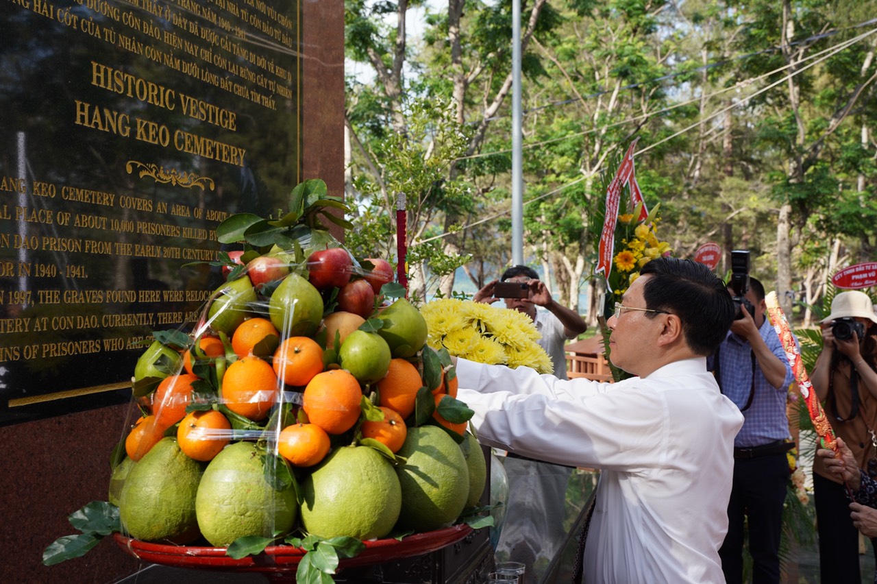 Trước đó, Phó Thủ tướng Thường trực Chính phủ Phạm Bình Minh cùng các cựu tù chính trị đã đến viếng Nghĩa trang Hàng Dương và Đền thờ Côn Đảo, bày tỏ lòng thành kính biết ơn, tưởng nhớ đến công lao to lớn của các anh hùng, liệt sỹ, đồng bào yêu nước đã anh dũng hy sinh vì sự nghiệp đấu tranh giải phóng dân tộc, để đất nước có được nền hòa bình như hôm nay. Trước anh linh các anh hùng liệt sĩ, Phó Thủ tướng Thường trực Chính phủ Phạm Bình Minh và đoàn công tác nguyện cùng toàn Đảng, toàn quân và toàn dân bảo vệ vững chắc nền độc lập dân tộc, xây dựng đất nước, thực hiện mục tiêu dân giàu, nước mạnh, dân chủ, công bằng, văn minh, xứng đáng với công lao to lớn của đồng bào, đồng chí đã chiến đấu và anh dũng hy sinh vì nền độc lập tự do của Tổ quốc.