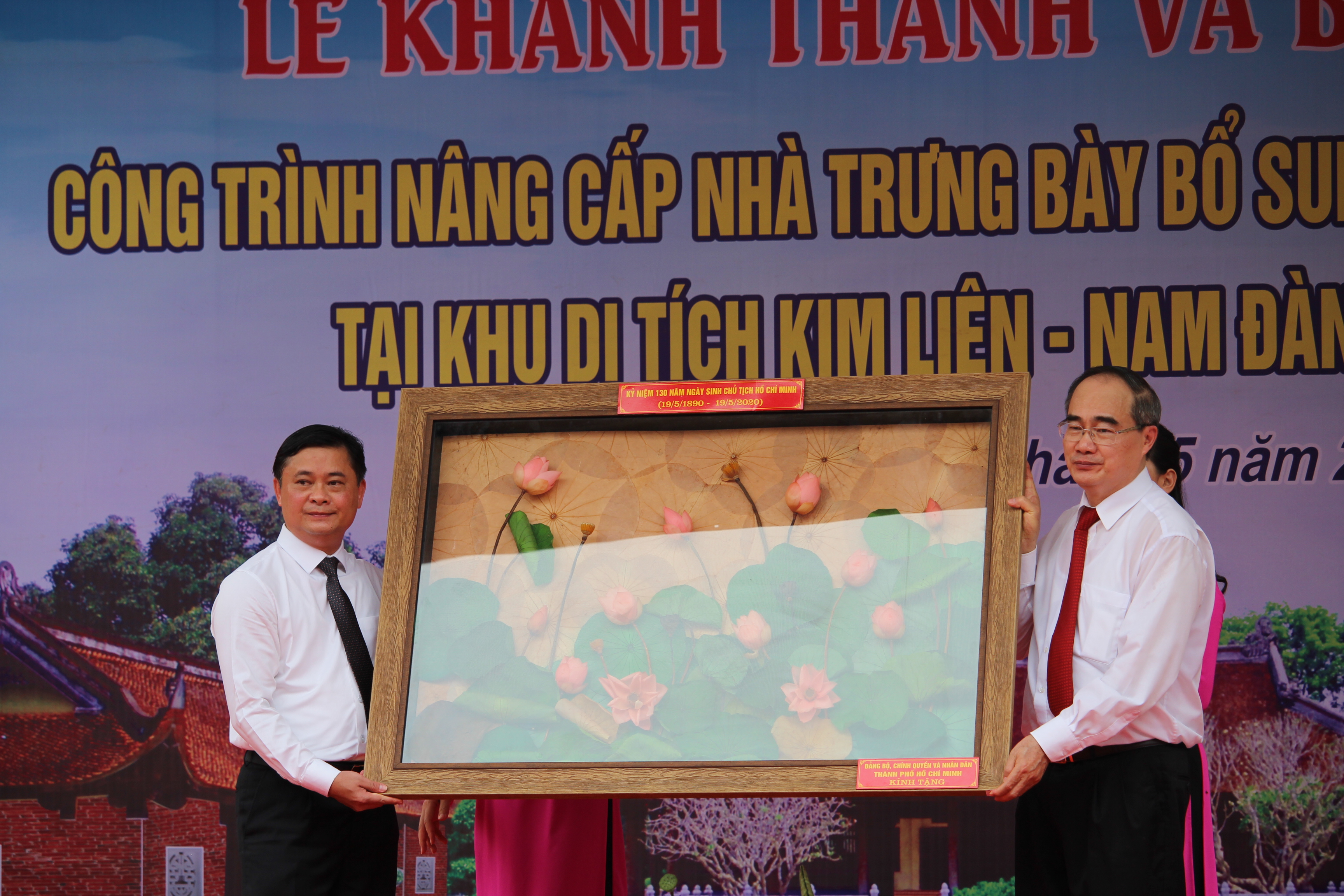 | Bí thư Thành ủy thành phố Hồ Chí Minh trao tặng bức tranh Sen cho tỉnh Nghệ An. |
