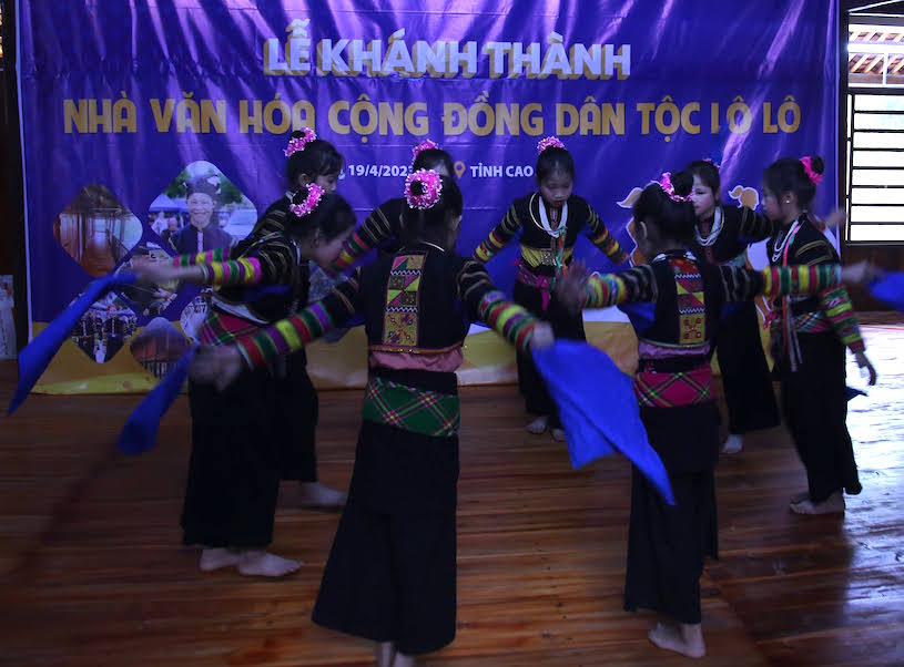 | Các em nhỏ Lô Lô biểu diễn tại lễ khánh thành Nhà văn hóa cộng đồng dân tộc |