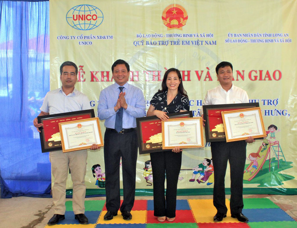 Phó Chủ tịch UBND tỉnh Long An - Phạm Tấn Hòa trao Bằng khen của UBND tỉnh cho tập thể và cá nhân có thành tích tốt trong công tác an sinh xã hội