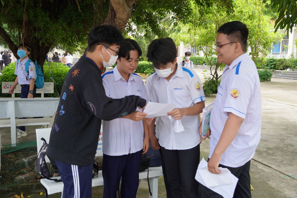 Thí sinh thảo luận đề thi sau khi kết thúc môn thi