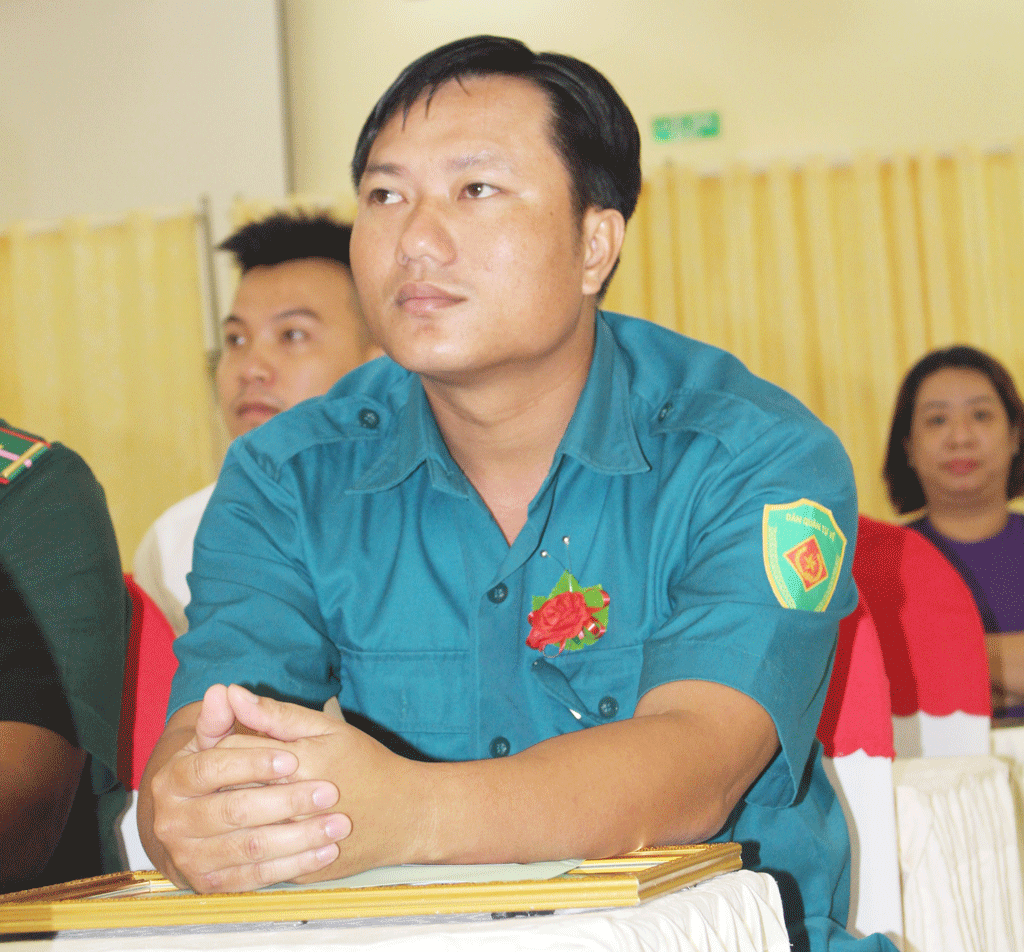 Trong hội trường, sự chú ý của chúng tôi bị thu hút vào một người đàn ông trong bộ trang phục dân quân. Bắt chuyện, anh giới thiệu mình tên Lê Minh Phương (34 tuổi) - Chỉ huy trưởng Ban Chỉ huy Quân sự xã Hướng Thọ Phú, TP.Tân An. Anh Phương chia sẻ, anh lập gia đình được hơn 7 năm và đã có 2 người con. “Sau khi hoàn thành nhiệm vụ ở cơ quan, tôi dành nhiều thời gian để vun vén cho gia đình nhỏ của mình, phụ giúp vợ công việc nhà, chơi cùng con, chăm sóc cha mẹ già. Đây cũng là tiêu chí mà tôi cảm thấy mình thực hiện tốt nhất trong các tiêu chí của Nam giới điểm 10” - anh Phương chia sẻ thêm.