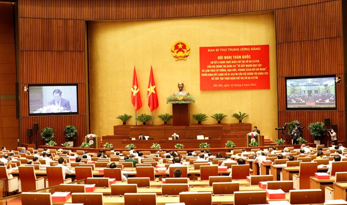 | Hội nghị trực tuyến toàn quốc sơ kết 5 năm thực hiện Chỉ thị số 05-CT/TW của Bộ Chính trị khóa XII, triển khai Kết luận số 01-KL/TW của Bộ Chính trị khóa XIII về tiếp tục thực hiện Chỉ thị số 05-CT/TW “Về đẩy mạnh học tập và làm theo tư tưởng, đạo đức, phong cách Hồ Chí Minh”. (Ảnh: Phạm Cường) |