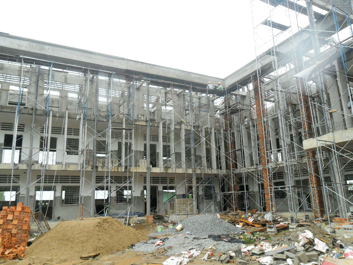Công trình Trường Tiểu học Long Hưng đang trong giai đoạn lợp mái tole.