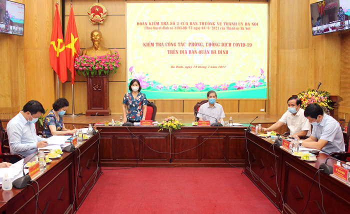 Đoàn kiểm tra số 2 của Ban Thường vụ Thành ủy Hà Nội do Ủy viên Trung ương Đảng, Phó Bí thư Thường trực Thành ủy Nguyễn Thị Tuyến dẫn đầu đã kiểm tra công tác phòng, chống dịch COVID-19 trên địa bàn quận Ba Đình.