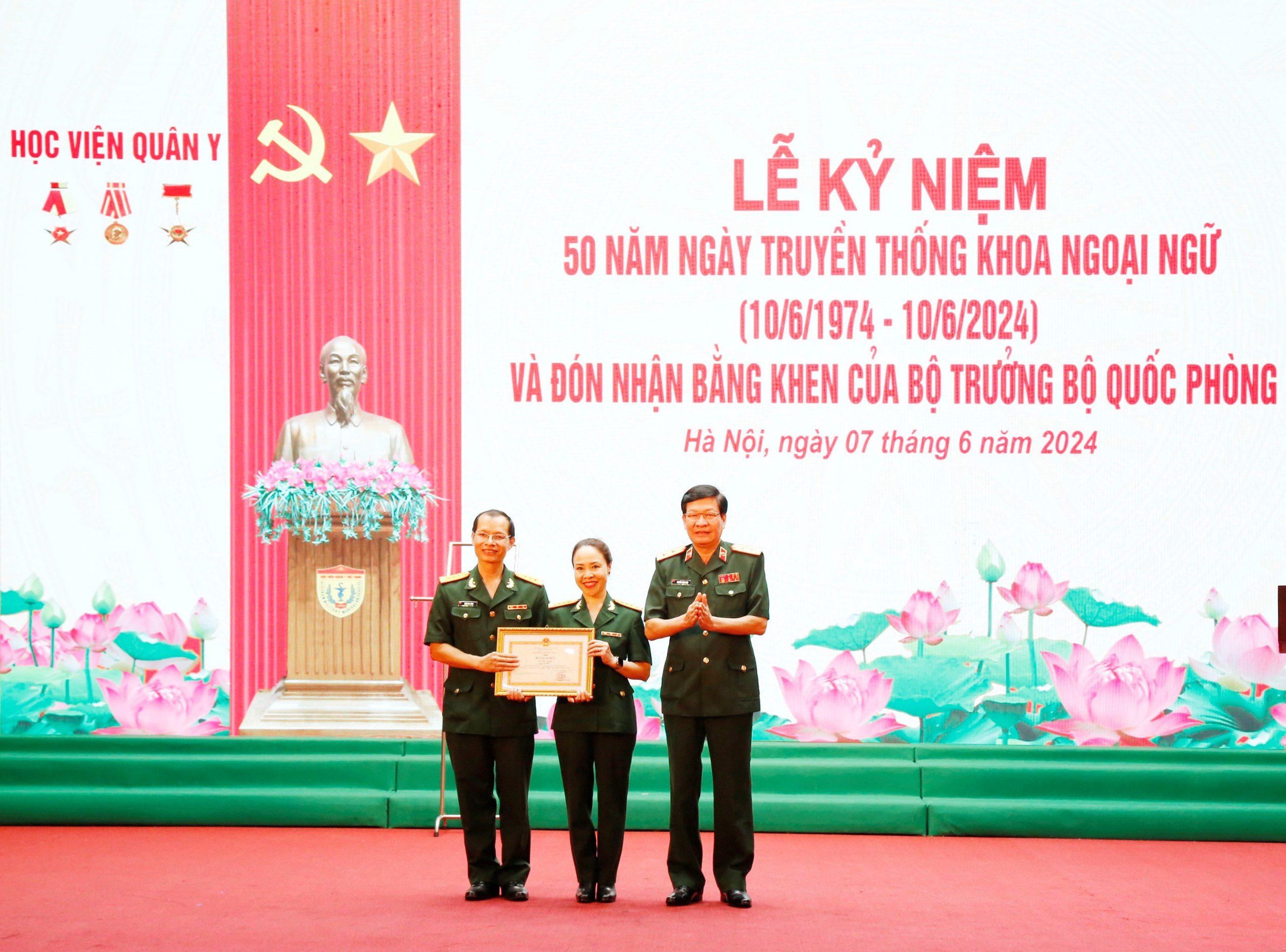 Ngày 7/6, tại Hà Nội, Khoa Ngoại ngữ, Học viện Quân y tổ chức Lễ kỷ niệm 50 năm Ngày truyền thống (10/6/1974 - 10/6/2024) và đón nhận Bằng khen của Bộ trưởng Bộ Quốc phòng. Trung tướng, PGS,TS Nguyễn Xuân Kiên, Giám đốc Học viện Quân y dự và phát biểu chúc mừng.