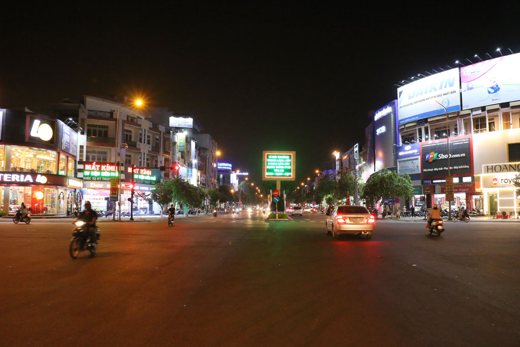 Đường phố Tân An về đêm lung linh trong những ánh đèn màu