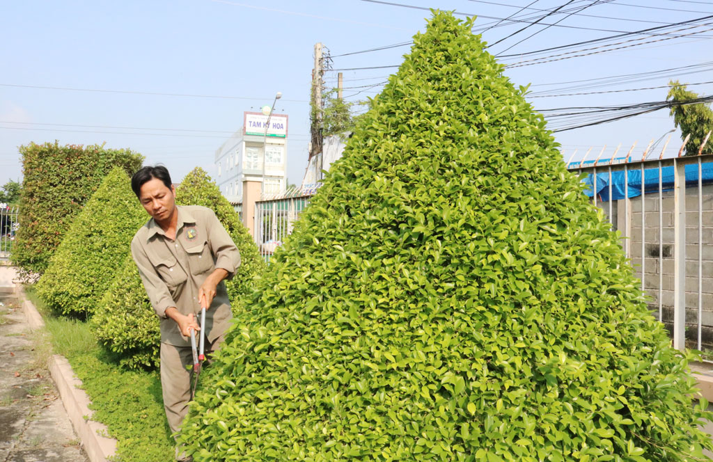 Lưng ướt đẫm mồ hôi, những công nhân Công ty Cổ phần Đô thị Tân An đang cặm cụi làm đẹp cho đường phố. Anh Nguyễn Văn Tâm - công nhân Đội Thắp sáng, chia sẻ: “Đây là công việc thường xuyên của chúng tôi. Năm nào cũng vậy, trước tết khoảng 20 ngày, chúng tôi chuẩn bị trang trí cho đường phố thêm sáng, đẹp. Chúng tôi chia nhau từng khu vực, có người phụ trách quấn các đèn led tạo màu lấp lánh tại một vài tuyến đường trung tâm thành phố, những người khác đi cắt tỉa, tạo hình cây xanh, người quét dọn đường phố,... Mỗi người một công việc, chỉ mong đem đến không khí tươi vui cho mọi người đón tết”.