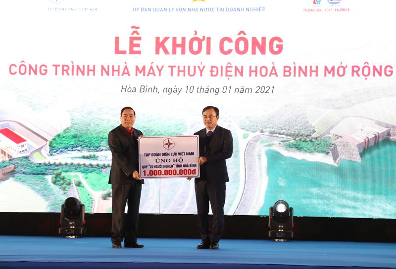 Tại lễ khởi công, lãnh đạo Ngân hàng Vietcombank và EVN đã trao hợp đồng tín dụng và EVN trao tặng Quỹ an sinh xã hội tỉnh Hòa Bình 1 tỷ đồng.