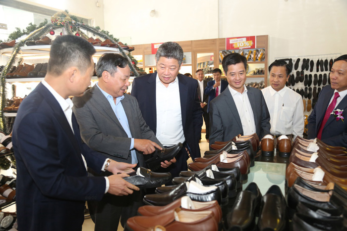 | Các đồng chí lãnh đạo tham quan một cơ sở làng nghề trên địa bàn huyện Phú Xuyên. |