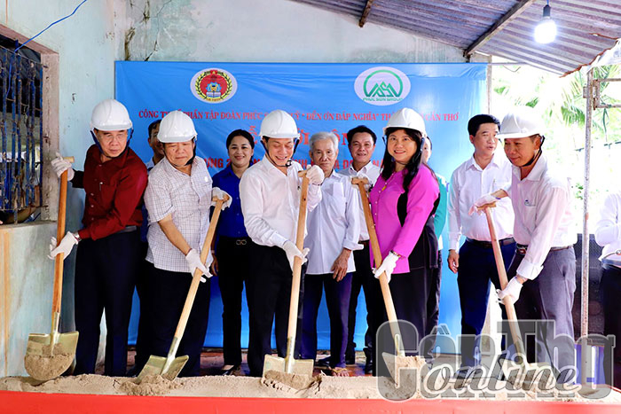 Lãnh đạo thành phố và huyện Phong Ðiền thực hiện nghi thức khởi công xây dựng nhà tình nghĩa.