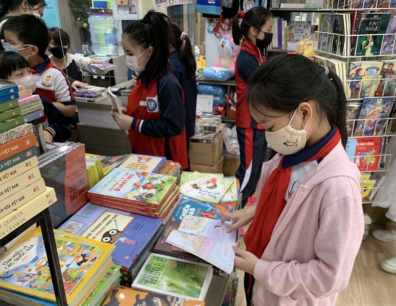 | Các độc giả nhỏ xem sách tại Phố sách Hà Nội |