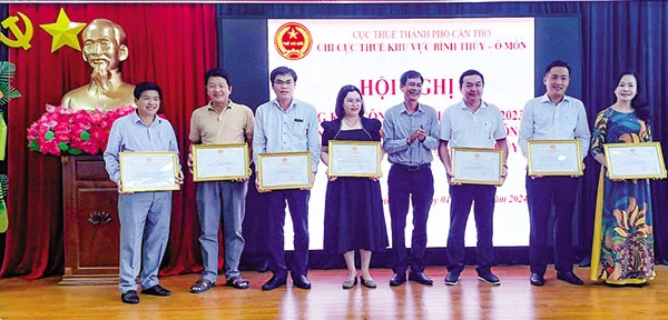 Chi cục Thuế khu vực Bình Thủy - Ô Môn tuyên dương các tổ chức cá nhân có thành tích tiêu biểu trong thực hiện nghĩa vụ thuế năm 2023.