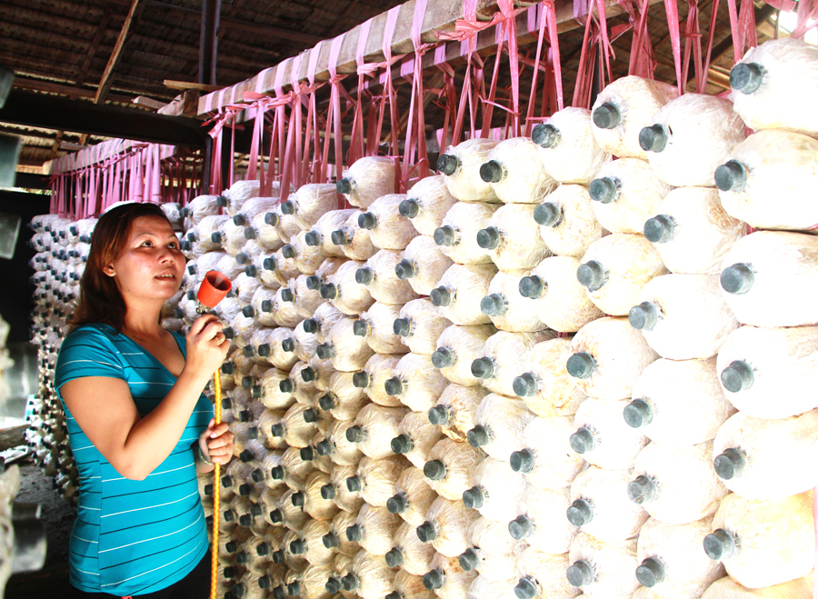 Chị Nga cho biết: “Loại nấm này dễ trồng, tôi có thể tận dụng thời gian nhàn rỗi để chăm sóc. Ngoài ra, sau khi thu hoạch, tôi tận dụng meo nấm cũ để trồng rau xanh rất tốt. Tôi sẽ tiếp tục tìm đầu mối thu mua để mở rộng mô hình này…”.