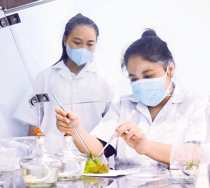 Theo chị Thanh, các bước khử trùng mẫu, tạo chồi, nhân nhanh số lượng, cấy rễ được thực hiện trong phòng cấy mô (môi trường in vitro) được thực hiện trong thời gian dài từ vài tháng đến hơn 1 năm. Để khử trùng mẫu, chị phải thử nhiều loại hóa chất, thử thời gian, thận trọng trong từng thao tác để đảm bảo mẫu sạch bệnh, không bị nhiễm nấm, không bị nhiễm khuẩn, đồng thời phải sống khỏe. “Khi cây đã cấy mô, đến khi đưa cây ra vườn ươm phải cần chăm sóc từ 1,5-3 tháng (tùy giống) mới có thể xuất bán. Từ lúc ra rễ trong phòng cấy mô đến khi ra môi trường nhà lưới, tùy từng loại cây mà tỷ lệ sống dao động từ 80% trở lên”, chị Thanh cho biết.