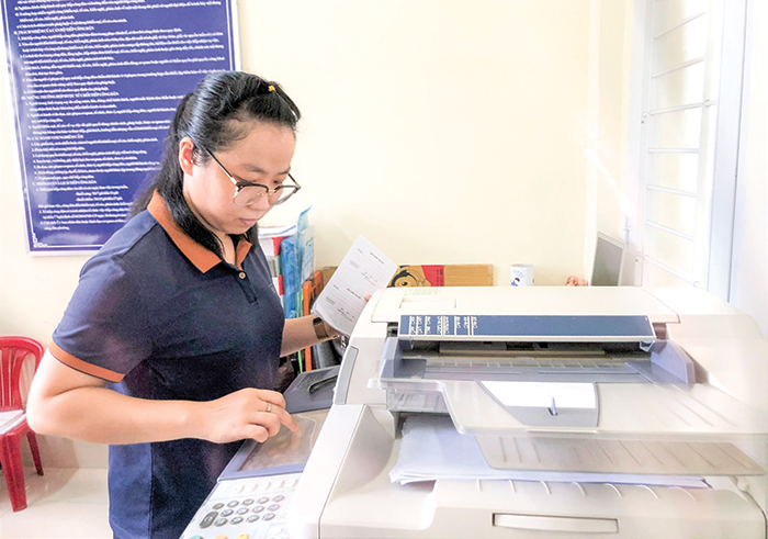 Chị Mai Đình sao chép giấy tờ, tài liệu cho khách hàng.