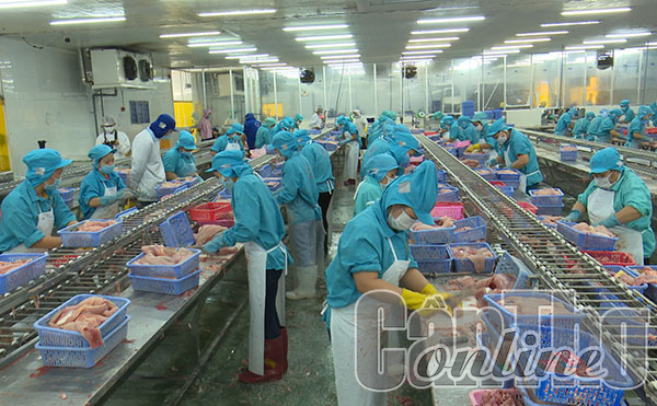 Doanh nghiệp mong các chính sách hỗ trợ tiếp tục duy trì để có thể vượt qua khó khăn. Trong ảnh: Chế biến cá tra xuất khẩu.