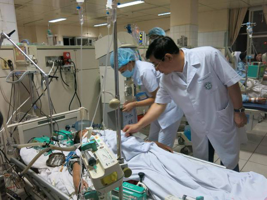 Nạn nhân trong vụ 18 bệnh nhân chạy thận nhân tạo bị tai biến ở Hòa Bình đang được các bác sĩ chăm sóc
