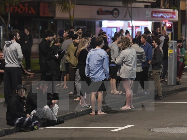 Người dân đổ ra đường do lo ngại dư chấn sau trận động đất ở Wellington, New Zealand sáng 14/11. (Nguồn: AP/TTXVN)