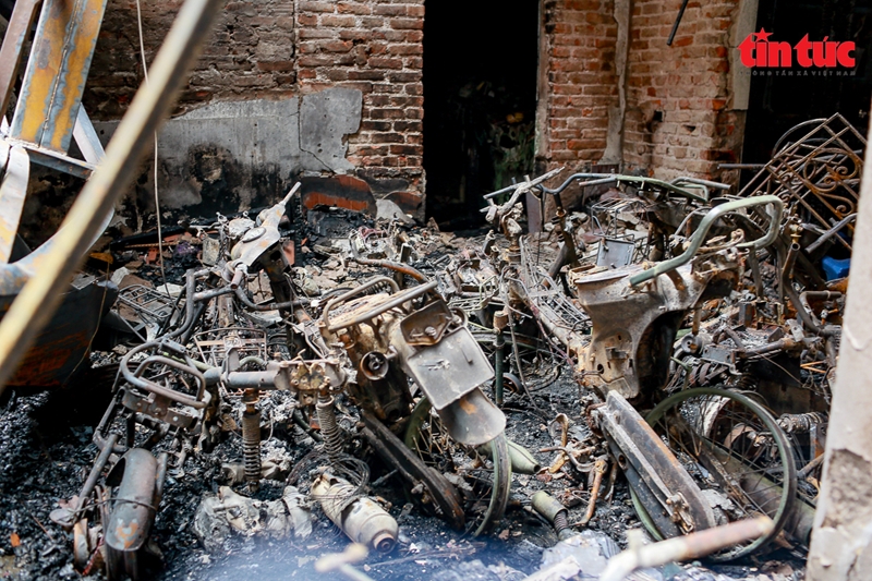 | Hiện trường vụ cháy khiến 14 người tử vong, 3 người bị thương và nhiều xe máy và xe đạp điện bị thiệu rụi. Ảnh:baotintuc.vn. |