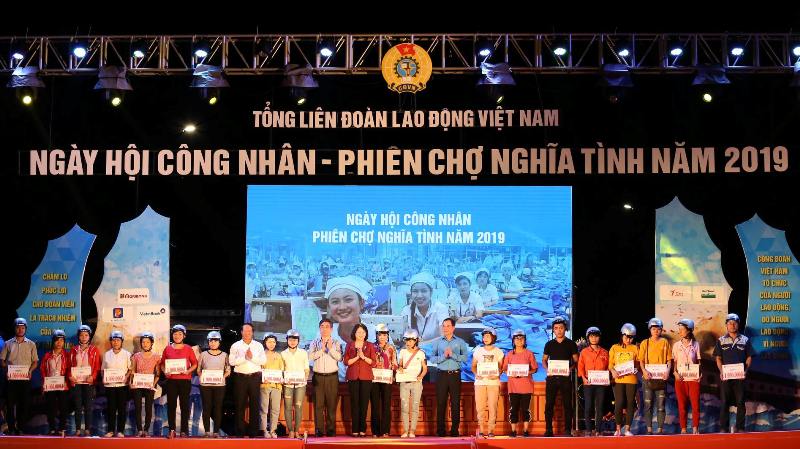 Tại chương trình, Tổng Liên đoàn lao động Việt Nam đã trao tặng 160 suất quà, mỗi suất trị giá 1 triệu đồng tiền mặt và hiện vật cho công nhân lao động tiêu biểu, xuất sắc, có hoàn cảnh khó khăn; trao 05 suất học bổng, mỗi suất trị giá 3 triệu đồng cho 5 học sinh giỏi là con công nhân lao động có hoàn cảnh khó khăn.