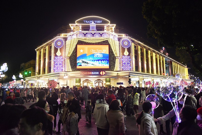 Người dân tập trung tại phố đi bộ Hồ Gươm ở trung tâm Thủ đô Hà Nội chào đón năm mới 2023. (Ảnh TRẦN HẢI)