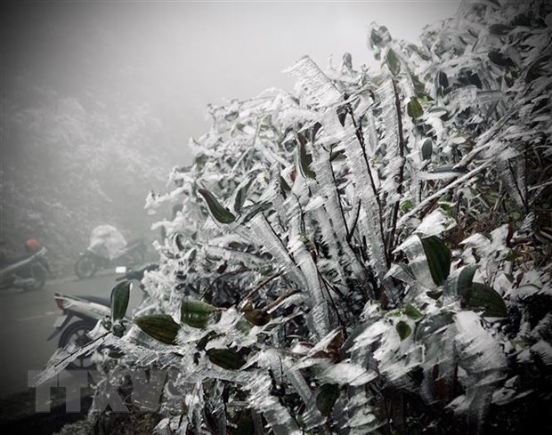 Một số hình ảnh sương muối, băng giá tại đỉnh đèo Khau Phạ. (Ảnh: Tuấn Anh-A Lù/TTXVN)