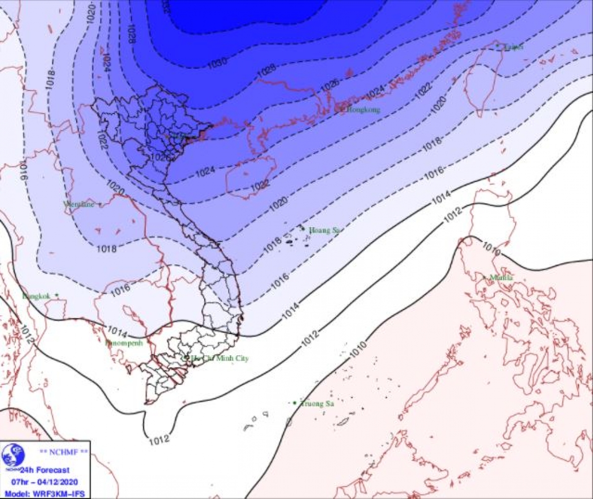Dự báo, ngày hôm nay (04/12), không khí lạnh sẽ tiếp tục ảnh hưởng đến các nơi khác ở phía Tây Bắc Bộ và Bắc Trung Bộ, sau đó ảnh hưởng đến Trung Trung Bộ.