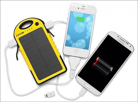 Trong khi đa số các bộ sạc dùng động cơ, thì Levin Solar Charger là thiết bị sử dụng năng lượng mặt trời. Đây là thiết bị có nhiều ưu điểm và cũng là sản phẩm thuộc tốp đầu danh sách được tìm kiếm trên Amazon.
