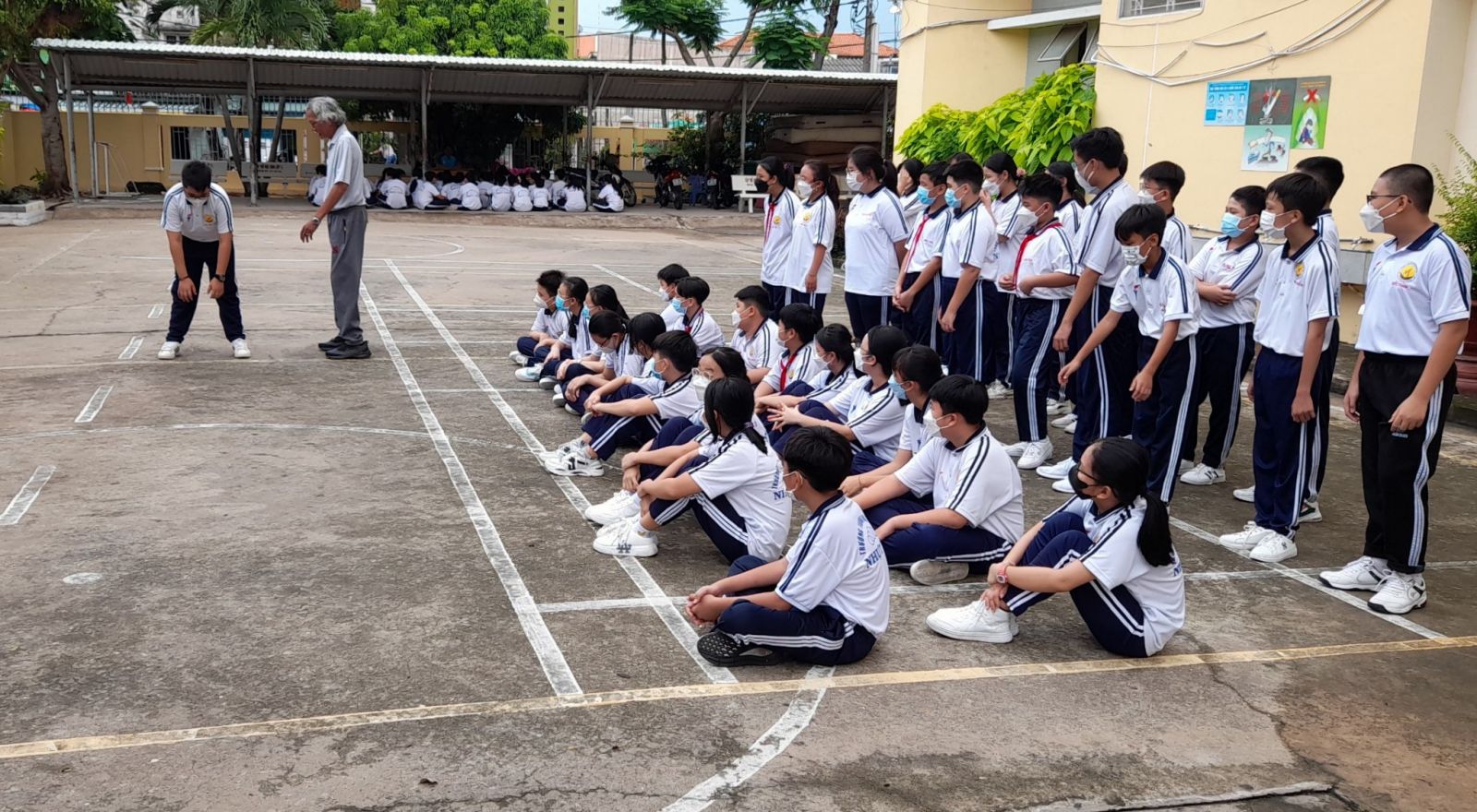 Học sinh vẫn duy trì đeo khẩu trang dù học ngoài trời