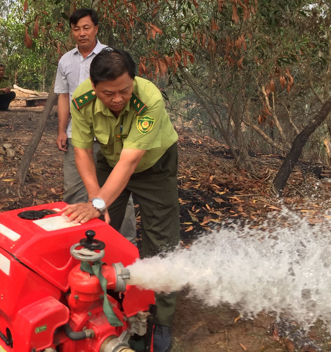 Lực lượng chức năng kiểm tra thiết bị phòng cháy, chữa cháy tại Khu Bảo tồn đất ngập nước Láng Sen