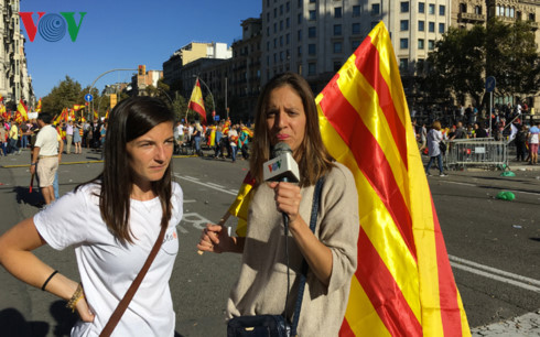 Báo chí Tây Ban Nha mô tả, từ 2010, năm mà đội tuyển bóng đá nước này lần đầu tiên vô địch World Cup, đến nay, chưa khi nào cờ Tây Ban Nha xuất hiện nhiều thế. Guarda Civil – cảnh vệ dân sự Catalonia đưa ra con số: 300.000-350.000 người, nhưng Societat Civil Catalana - các tổ chức dân sự Catalonia, nơi phát đi lời kêu gọi xuống đường, đưa ra con số nhiều gấp 3, từ 1 triệu đến 1,3 triệu người.