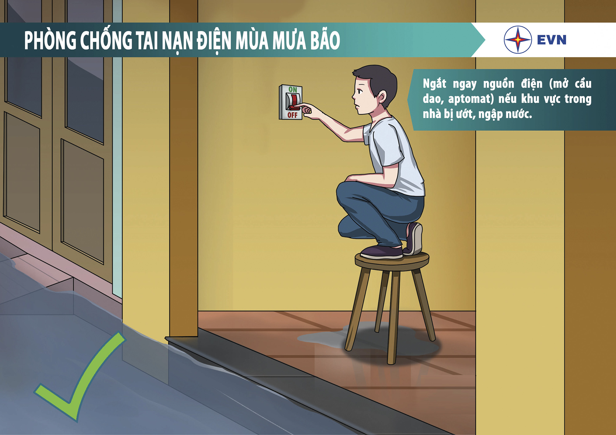 | Khi ngập nước, hãy cắt điện toàn bộ nhà để đề phòng nước ngập các ổ điện, rò điện gây nguy hiểm tính mạng |