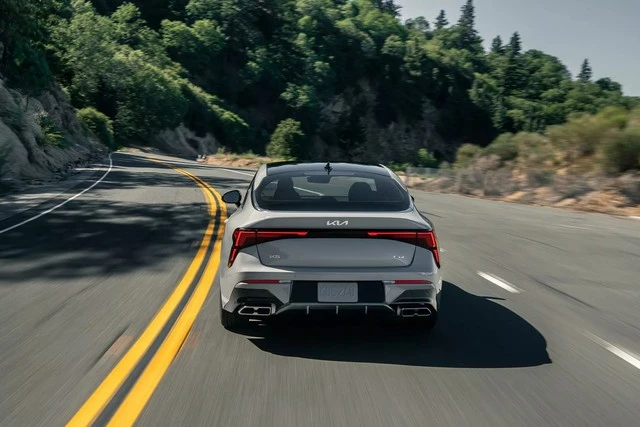 Cao cấp nhất là bản Kia K5 GT được trang bị động cơ 2.5 lít tăng áp, sản sinh công suất 290 mã lực và mô-men xoắn cực đại 421 Nm, kết hợp với hộp số ly hợp kép tám cấp và hệ dẫn động cầu trước.