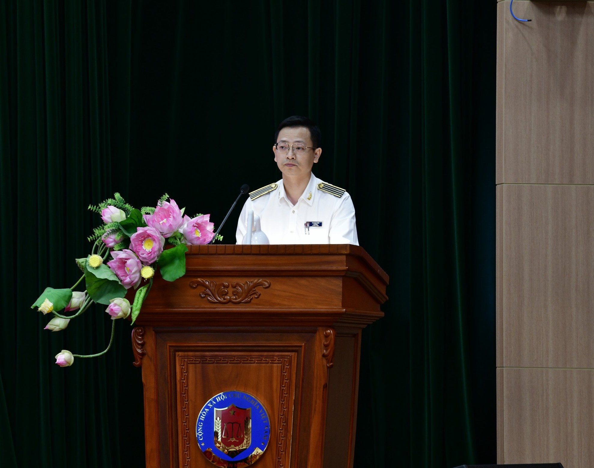 | Vụ trưởng Vụ Tổng hợp Vũ Ngọc Tuấn báo cáo. |
