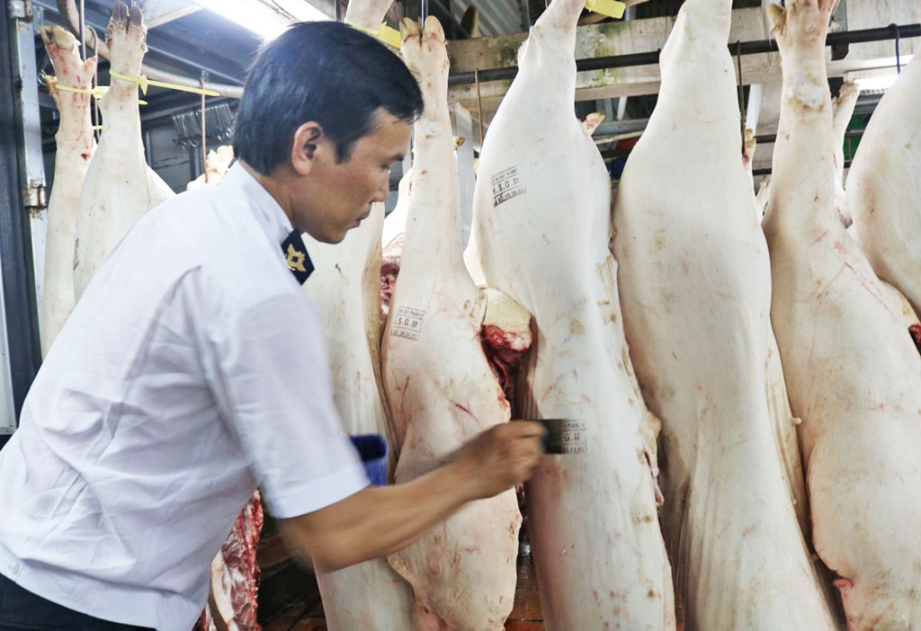 Trong đó, đoàn kiểm tra các thủ tục hành chính, hồ sơ, giấy tờ liên quan đến nguồn gốc, xuất xứ, dấu kiểm soát giết mổ, giấy kiểm dịch động vật, số lượng heo nhập vào các cơ sở giết mổ,... Bên cạnh đó, đoàn kiểm tra khu lưu nhốt động vật, vệ sinh khu vực lò mổ,...theo quy định.