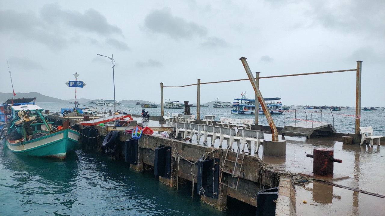 | Nhà chờ tại bến cảng cặp tàu cao tốc bị sập |