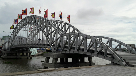 Cầu đi bộ bắc qua sông Kiên đã đưa vào sử dụng kịp mùa lễ hội. Ảnh: nld.com.vn