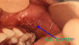 - Xuất hiện các nốt nhỏ ở giữa có màu xanh trắng bên trong miệng (vùng gò má). Ngoài ra trên thân người phát những đốm đỏ lớn, phẳng, nối với nhau.