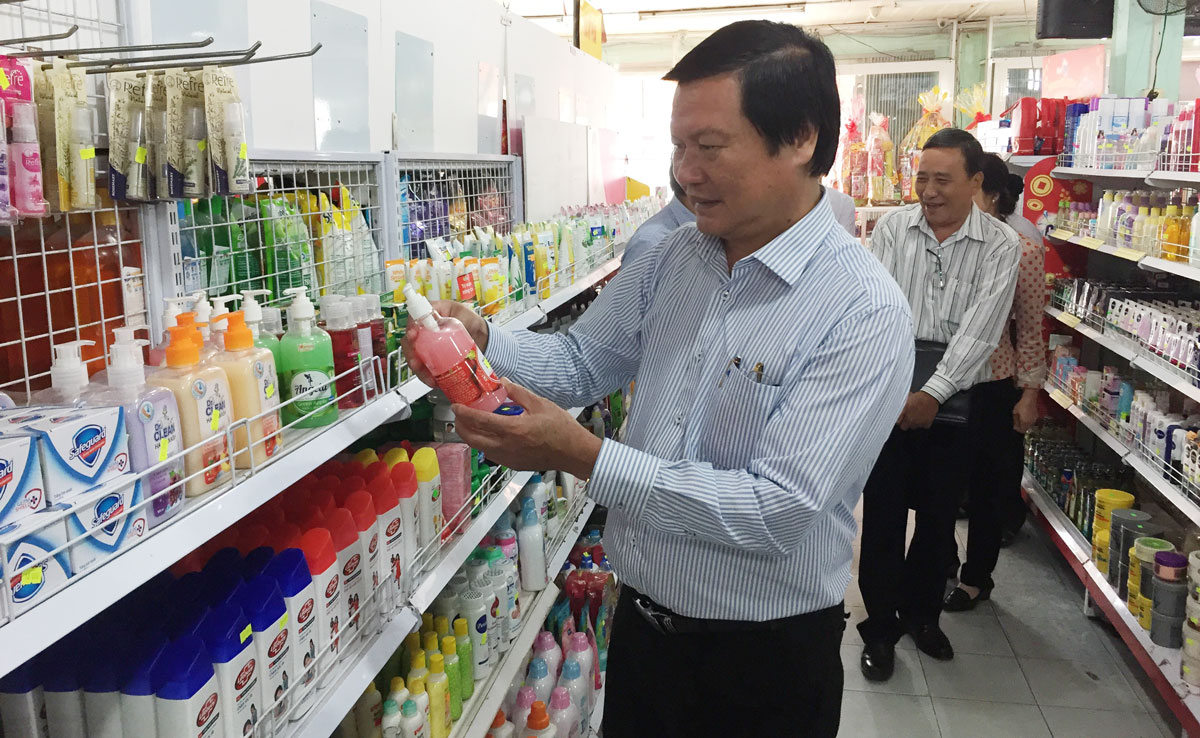 Giám đốc Sở Công Thương Long An - Lê Minh Đức kiểm tra tình hình dự trữ hàng hóa phục vụ thị trường dịp Tết Nguyên đán Mậu Tuất 2018 tại Kiến Tường