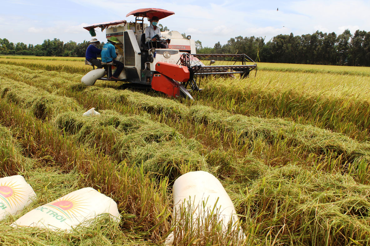 Cơ giới hóa giúp giảm nhân công lao động trong sản xuất lúa. Ảnh: Tuấn Hùng