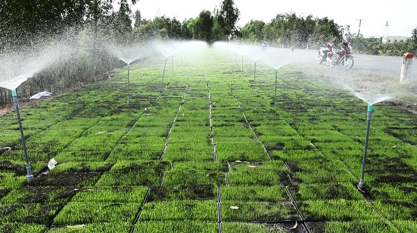 Sản xuất lúa ứng dụng công nghệ cao mang lại nhiều lợi ích thiết thực cho nông dân. Ảnh: Tuấn Hùng