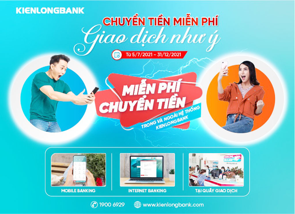 Kienlongbank triển khai Chương trình “Chuyển tiền miễn phí - Giao dịch như ý” từ ngày 05/7/2021 đến hết ngày 31/12/2021