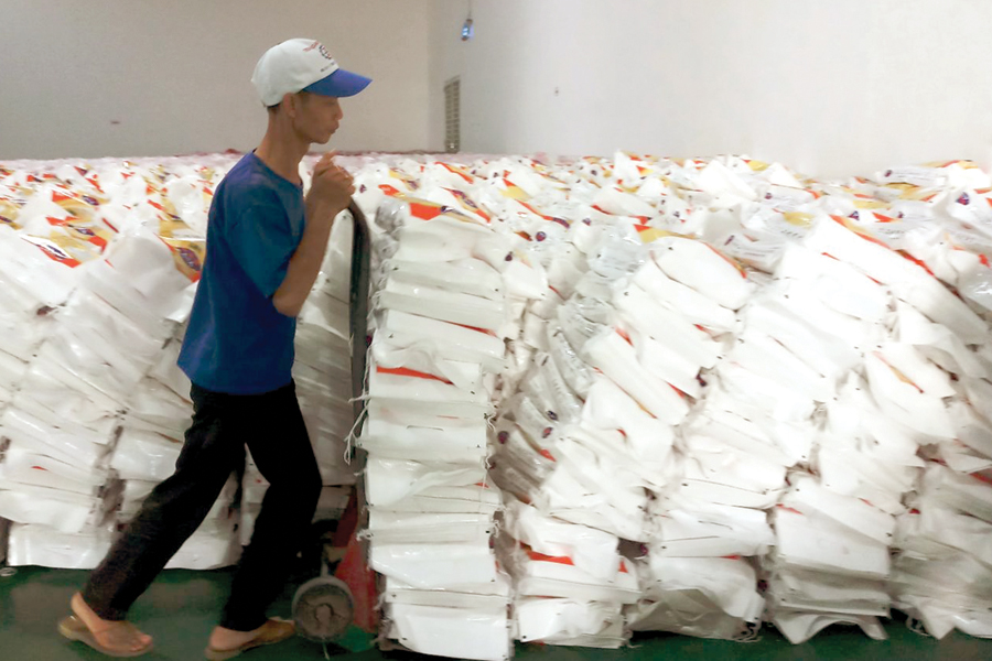 Gạo đóng túi phục vụ xuất khẩu tại Công ty Cổ phần Nông nghiệp công nghệ cao Trung An, quận Thốt Nốt, TP Cần Thơ. Ảnh: MỸ THANH