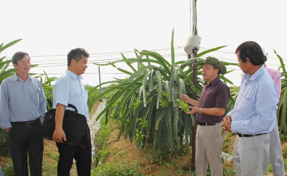 Các hợp tác xã trồng thanh long trên địa bàn tỉnh đến học tập kinh nghiệm sản xuất thanh long tại Hội quán Cầu Đôi (xã An Lục Long)