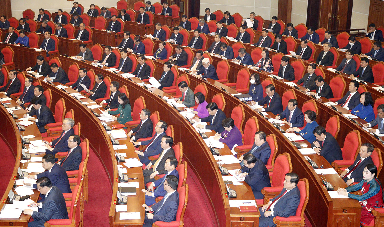 Tổng Bí thư Nguyễn Phú Trọng yêu cầu các đại biểu dự Hội nghị Trung ương 5, khóa XIII cho ý kiến thảo luận về tổng kết 10 năm thực hiện Nghị quyết Hội nghị Trung ương 6 khoá XI về tiếp tục đổi mới chính sách, pháp luật về đất đai.
